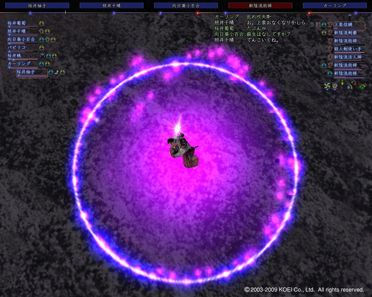 上泉ですが、戦闘前は回復のスキルが一番重要と思っていたのですが、盾のお二人が固くってあんまりヒーヒー言うような戦闘ではありませんでした。1年前やった頃は何回か旗折れしたんですが、やっぱり装備が充実してきたからなんでしょうね^^;
