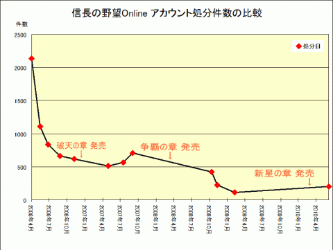 山吹鯖で星野詐欺にご注意を! の記事を書いてる時にふと思ったので、運営側のアカウント処分の数を調べてみました。