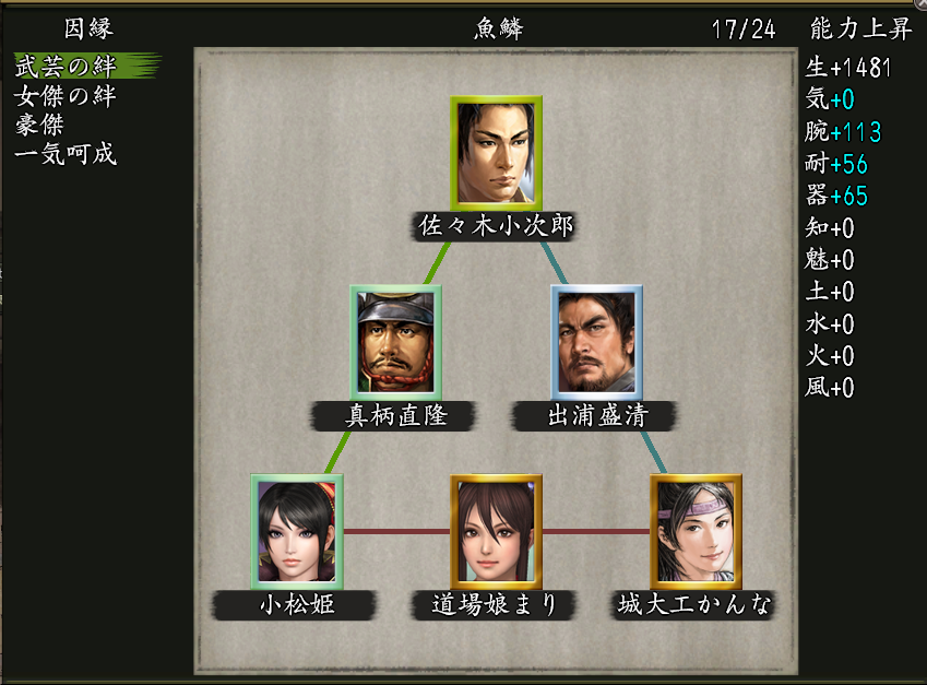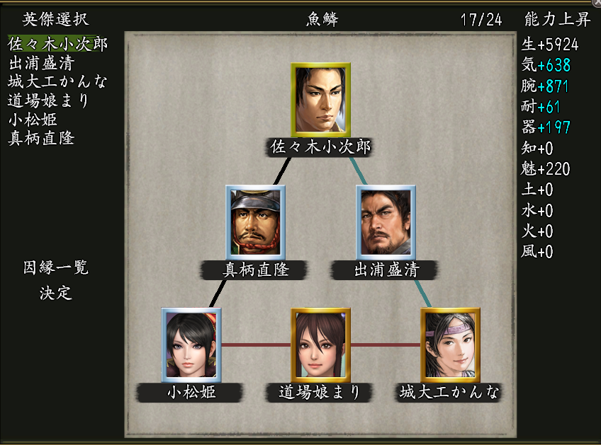 英傑陣法| 佐々木小次郎(涼)-出浦盛清-城大工かんな-道場娘まり-小松姫-真柄直隆