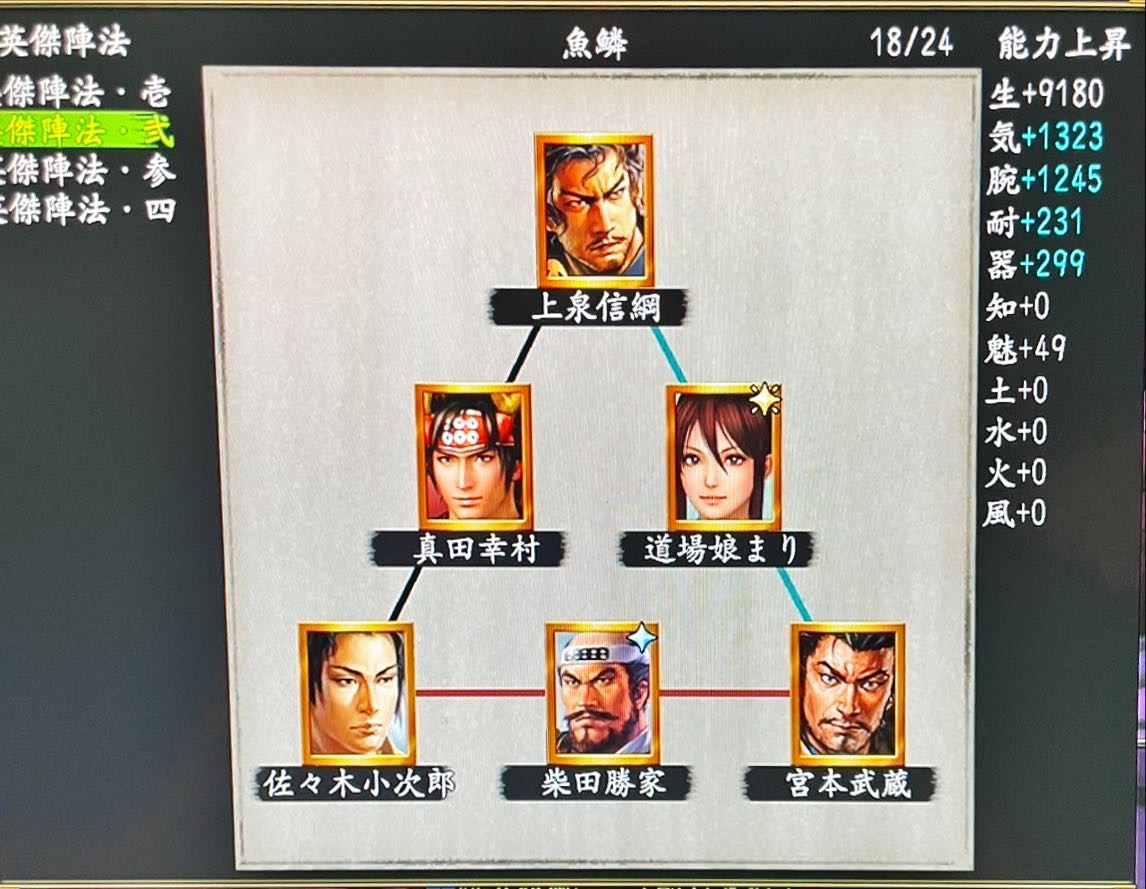 英傑陣法| 上泉信綱-道場娘まり(和装)-宮本武蔵-柴田勝家(風雲)-佐々木小次郎(涼)-真田幸村
