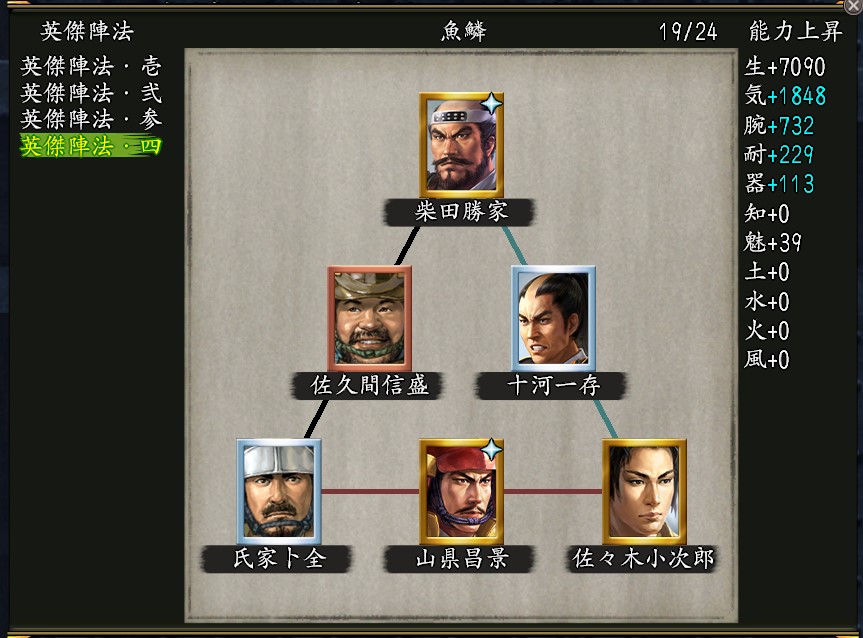 英傑陣法| 柴田勝家(風雲)-十河一存-佐々木小次郎(涼)-山県昌景(泰然)-氏家卜全-佐久間信盛 腕力 X Facebook はてブ LINE コピー 2024.07.12 Xでコメントを頂いたお幻さんからの陣法です。陣法が公開された時ににらめっこをし続けてた佐久間さんの顔が忘れられません😋 https://twitter.com/ogensama_carbun/status/1786523295208419436