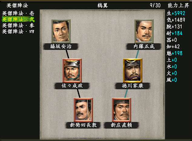 英傑陣法| 脇坂安治-佐々成政-新発田長敦-内藤正成-徳川家康-新庄直頼
