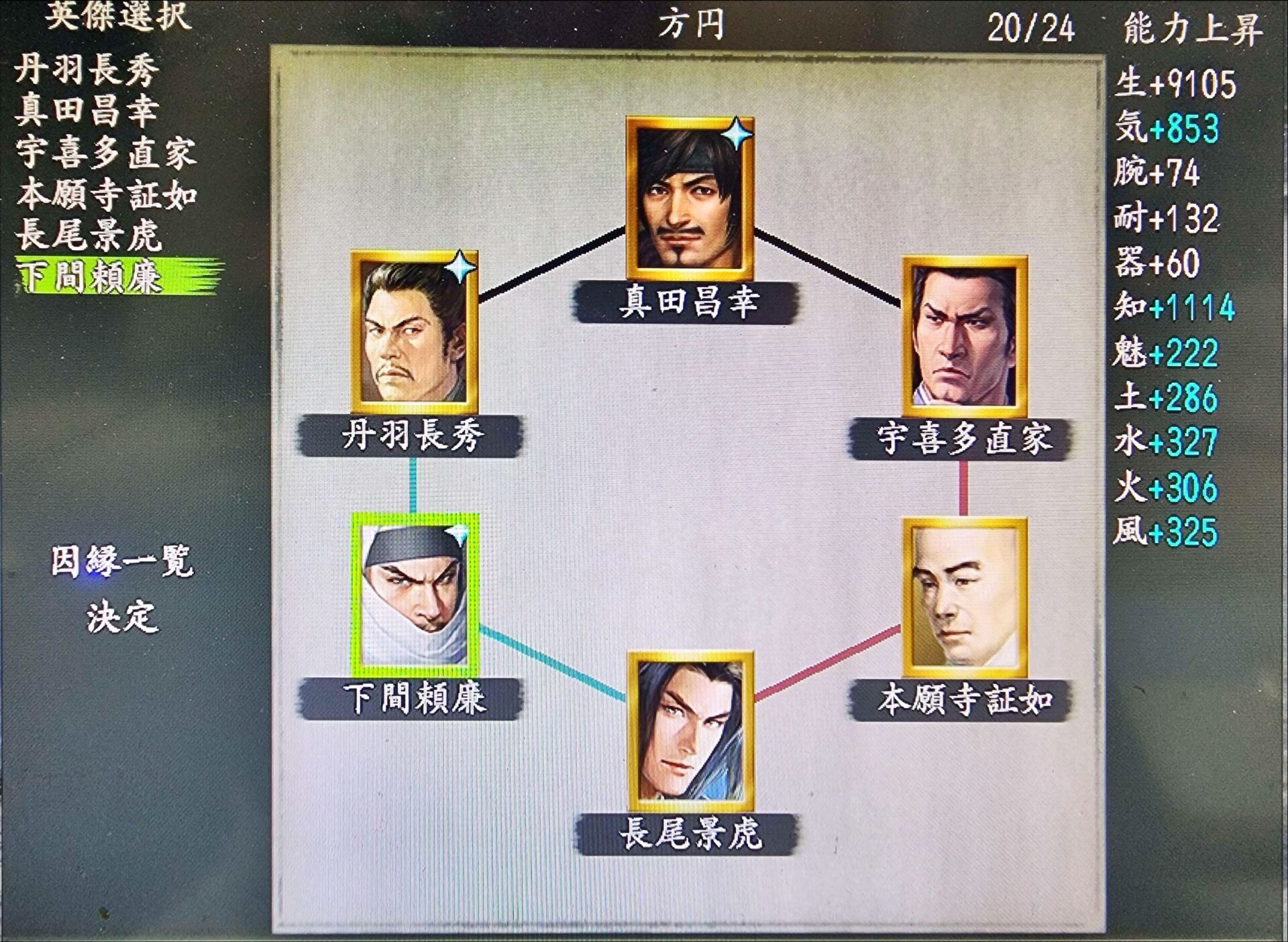 英傑陣法| 丹羽長秀(風雲)-真田昌幸(吸血)-宇喜多直家-本願寺証如-長尾景虎-下間頼廉(籠城) 知力 X Facebook はてブ LINE コピー 2024.11.12 じゃむさん 転載のご許可ありがとうございますm(_ _)m 転載じゃむ&がちゃのYoutubeチャンネル じゃむ&がちゃ信長の野望onlineの動画をあげていく予定です。天翔サーバー初期から始めて10年近く引退したのち2020年に復帰しました。旧メインキャラ:タイガーさん現在メインキャラ:邪夢御路散、牙茶瀕