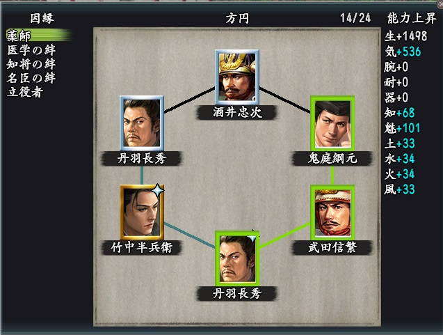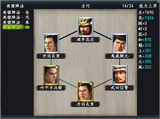 英傑陣法| 丹羽長秀(風雲)-酒井忠次-鬼庭綱元-武田信繁-丹羽長秀-竹中半兵衛(知将) 知力 X Facebook はてブ LINE コピー 2024.11.12 掲載許可を頂いたけーとんさんの陣法です。英傑陣法実装が間もない頃、薬師陣法がなかなか良い!との事で使わせていただいてました🙏 薬師で固めてみた……で。知力系はこんな感じか pic.twitter.com/l2AbKmduV0— k-㌧ (@k_ton1207) July 6, 2023
