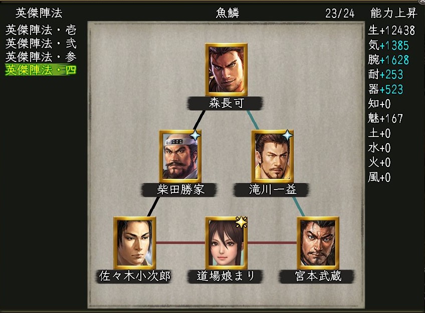 英傑陣法| 森長可-滝川一益(風雲)-宮本武蔵(涼)-道場娘まり(和装)-佐々木小次郎(涼)-柴田勝家(風雲) 腕力 X Facebook はてブ LINE コピー 2024.11.23 帝ちゃんの陣法が更新!滝川一益(風雲)が入った陣法は初めての掲載で、拝借させて頂きました!ありがとぉ!!😍 三千院帝のアルバム♪ 信長の野望online絵日記個人的なアルバム日記の予定です。 自己満足なので、あんまり面白いものじゃないです。【三千院帝のアルバム♪ 信長の野望online絵日記】 https://twitter.com/sanzenin_mikado/status/1843280988098777373