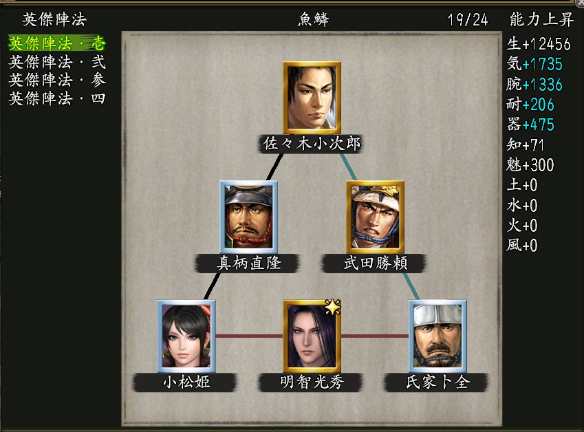 私の忍者は腕力がカンストしていて他のステへの調整をチマチマしてました。🎃くんとの雑談しながらの指南を頂き、暗殺が因縁6組めました!この陣法、どきどきんちゃんねるさんで公開されていた陣法でして。チャンネルの方に投稿を頂いた方、有難うございました!