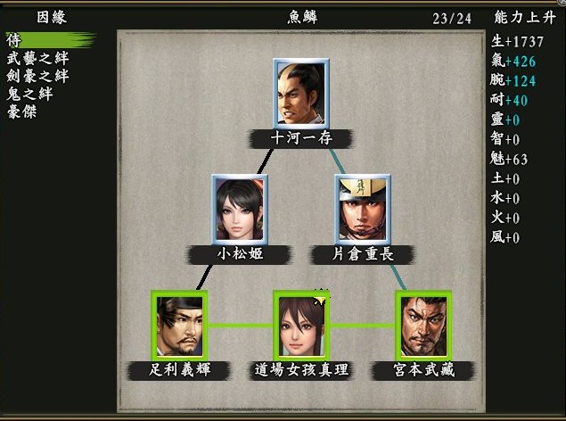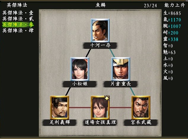 足利義輝->真田幸村/上泉信綱 /真柄直隆/伊達成実/柴田勝家(這幾隻都可以互換