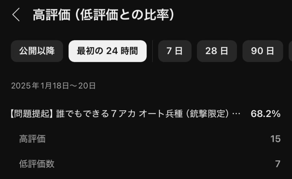 予想を上回る再生数と高評価・低評価の反応には驚きを隠せません。これらの反響は、人間の「タネと仕掛けを知りたい」という本能的な好奇心の表れだと思います。高評価を押した方は共感や応援の気持ちから、低評価を押した方は戦術への反対や事実公開への疑問、その他の意見を持つ方々でしょう。