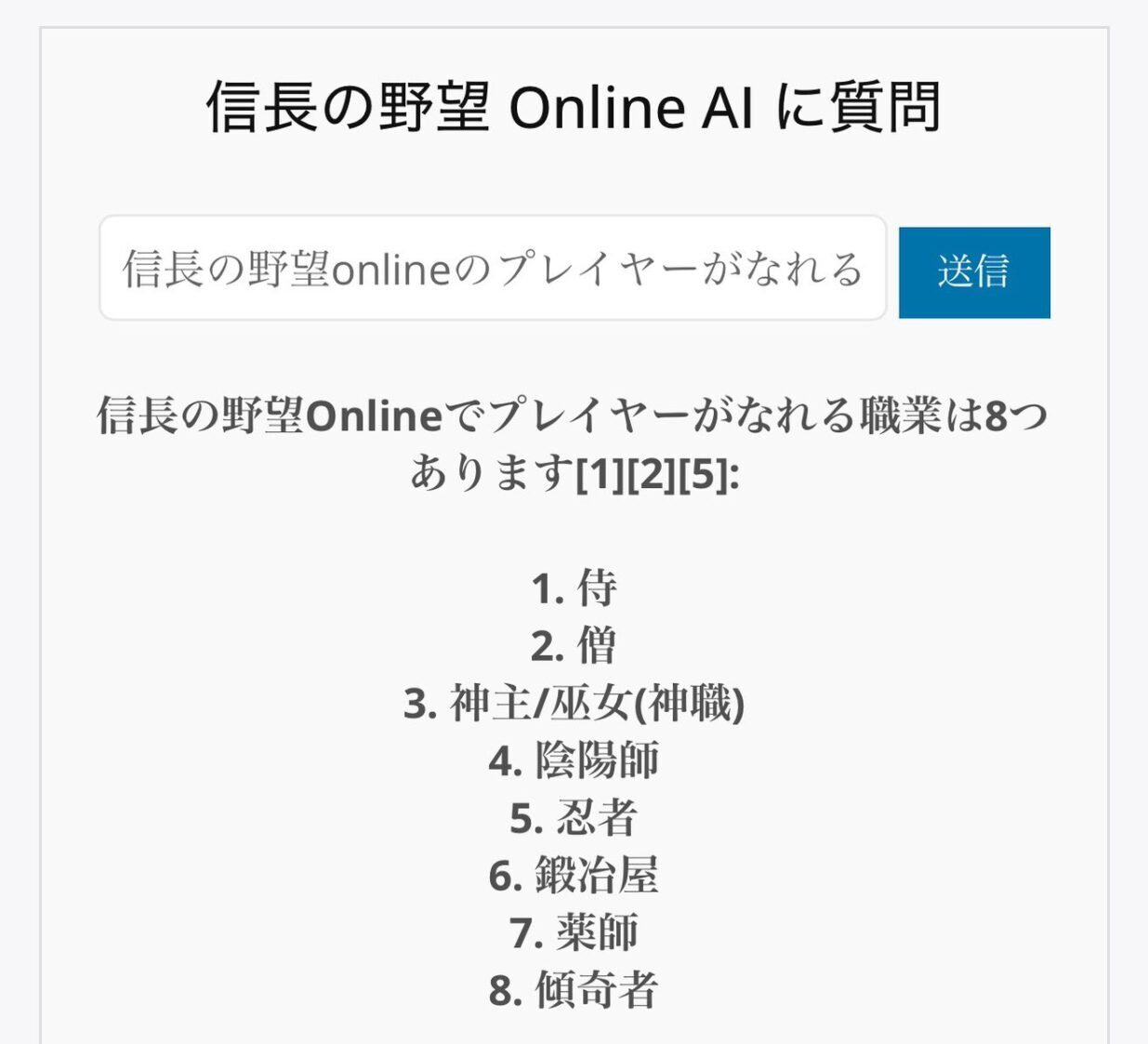 ✅ 「信長の野望Online」に関する情報を集めて、AIで回答できるようにする」